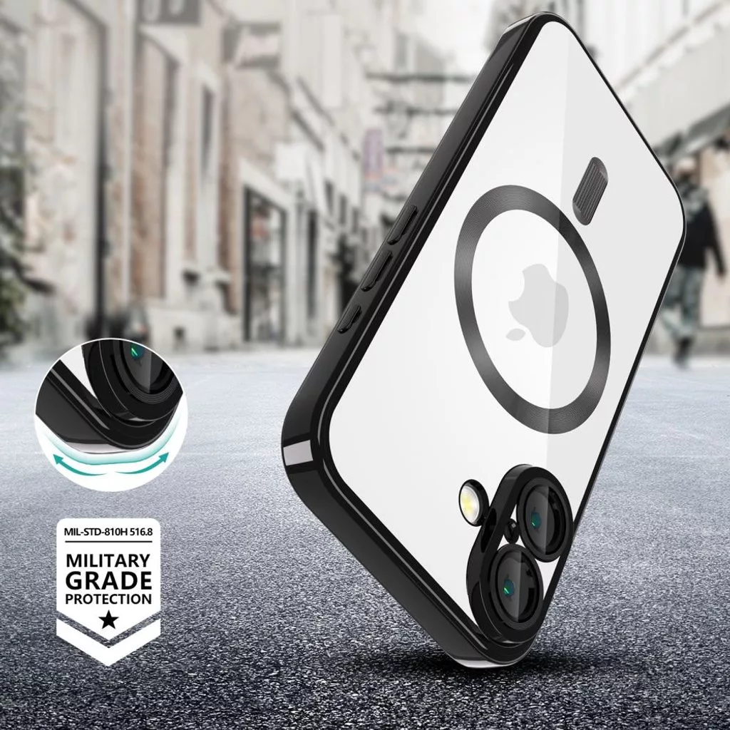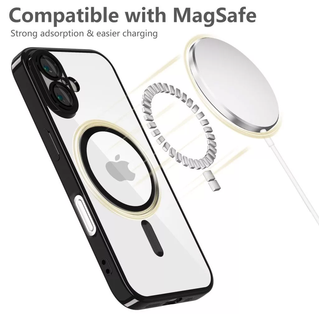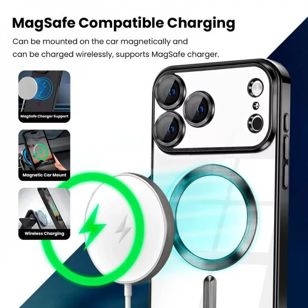 Husa Apple iPhone 17 Pro, Magsafe Electroplating TPU, protectie camera, margini negre