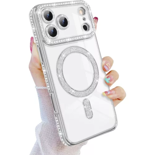 Husa de protectie Electroplating Bling Magsafe TPU este fabricata dintr-un TPU transparent de calitate superioara, are marginile electroplacate, cu pietricele decorative, ofera protectie extinsa camerelor telefonului si, datorita insertiei metalice, este compatibila cu suportul auto Magsafe, sau cu alte accesorii Magsafe, ce nu implica incarcarea wireless.