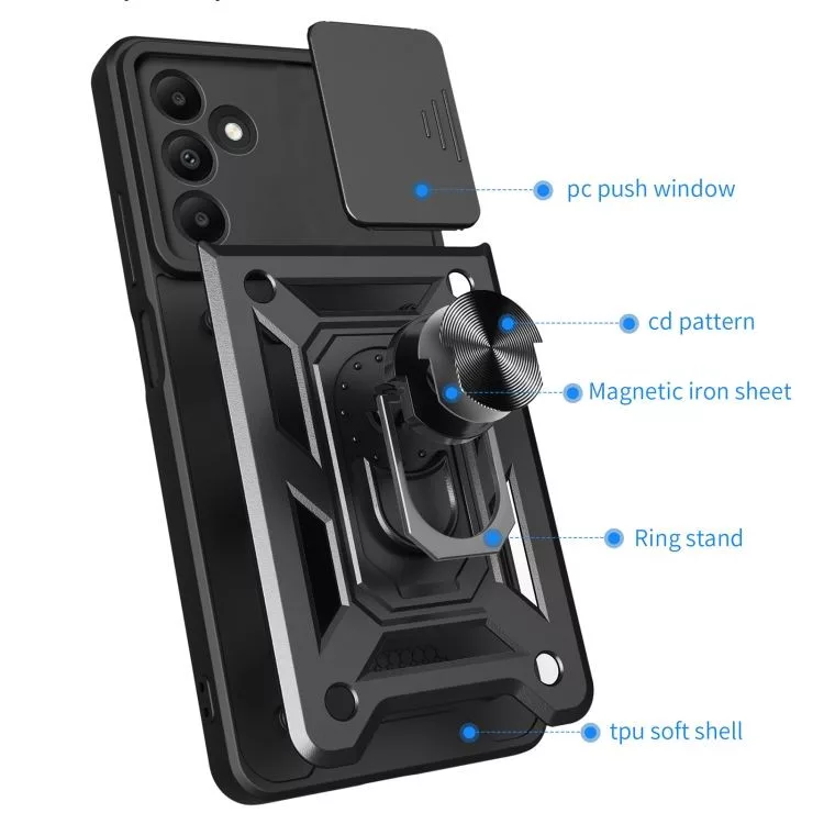 Husa Camshield Armor cu functie stand expunere si protectie camera are o constructie hibrida din silicon TPU acoperit cu plastic dur, asigurand o prindere ferma a telefonului si protejandu-l impotriva zgarieturilor, socurilor si a uzurii.