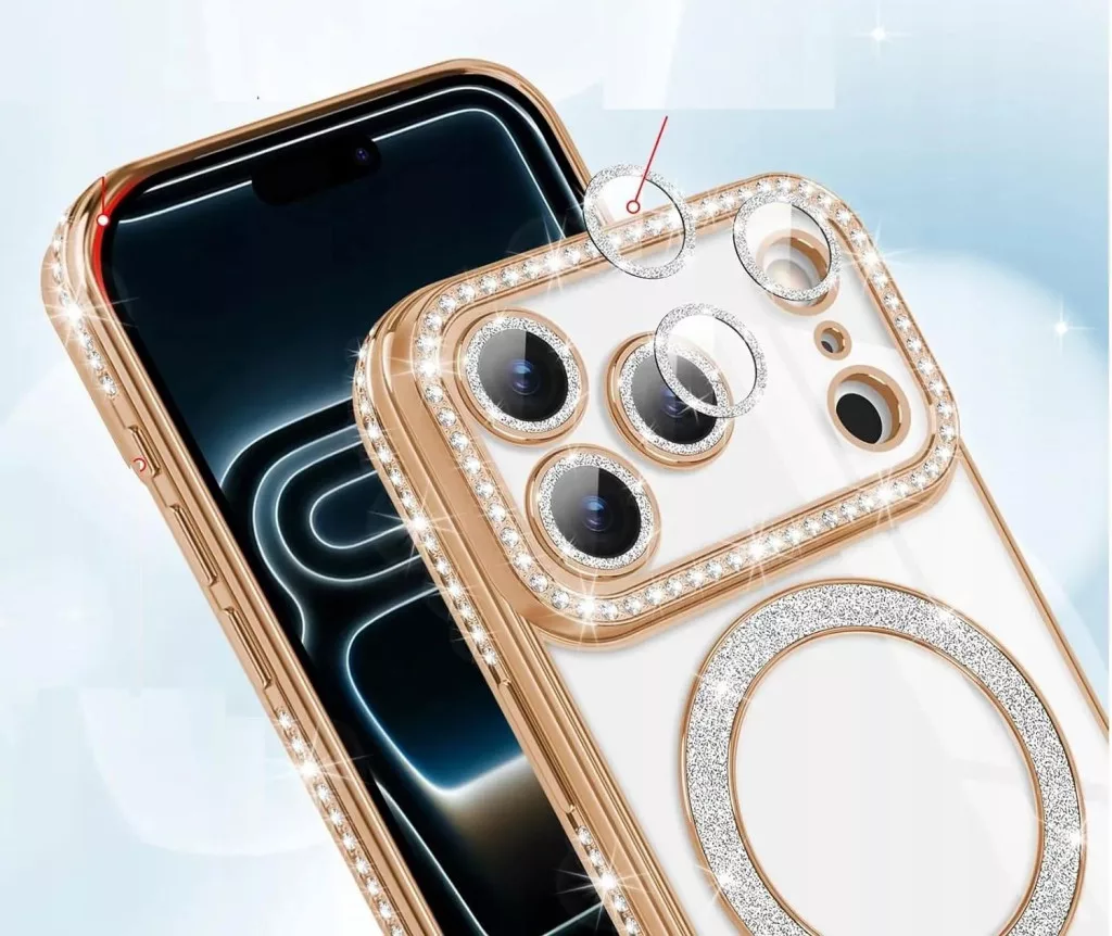 Husa Apple iPhone 17 Pro, Electroplating Bling Magsafe, protectie camera, margini aurii