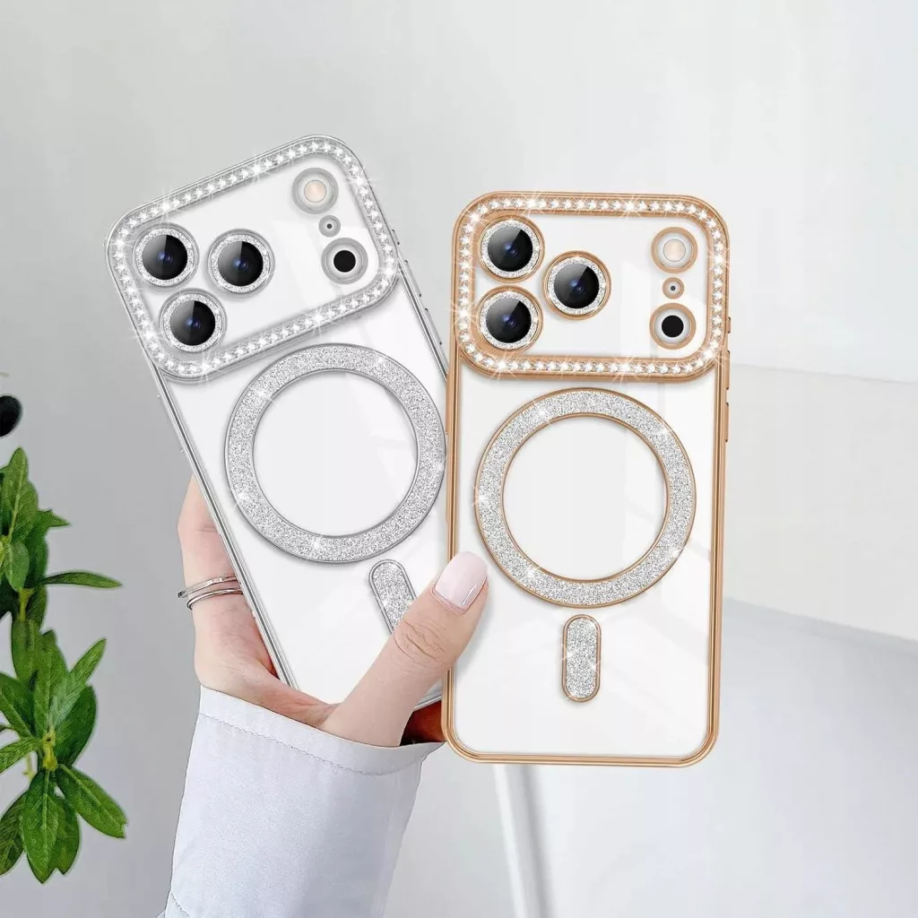 Husa Apple iPhone 17 Pro Max, Electroplating Bling Magsafe, protectie camera, margini negre