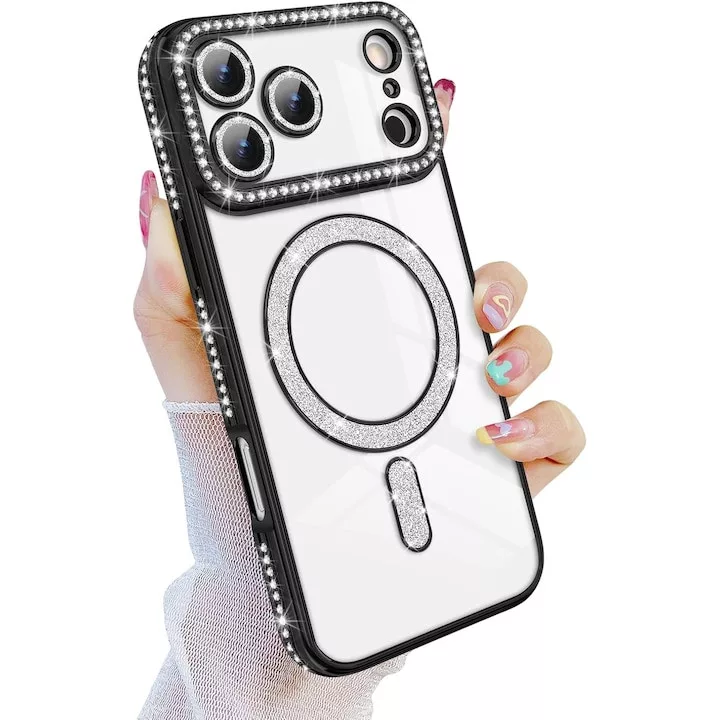 Husa Apple iPhone 17 Pro, Electroplating Bling Magsafe, protectie camera, margini negre